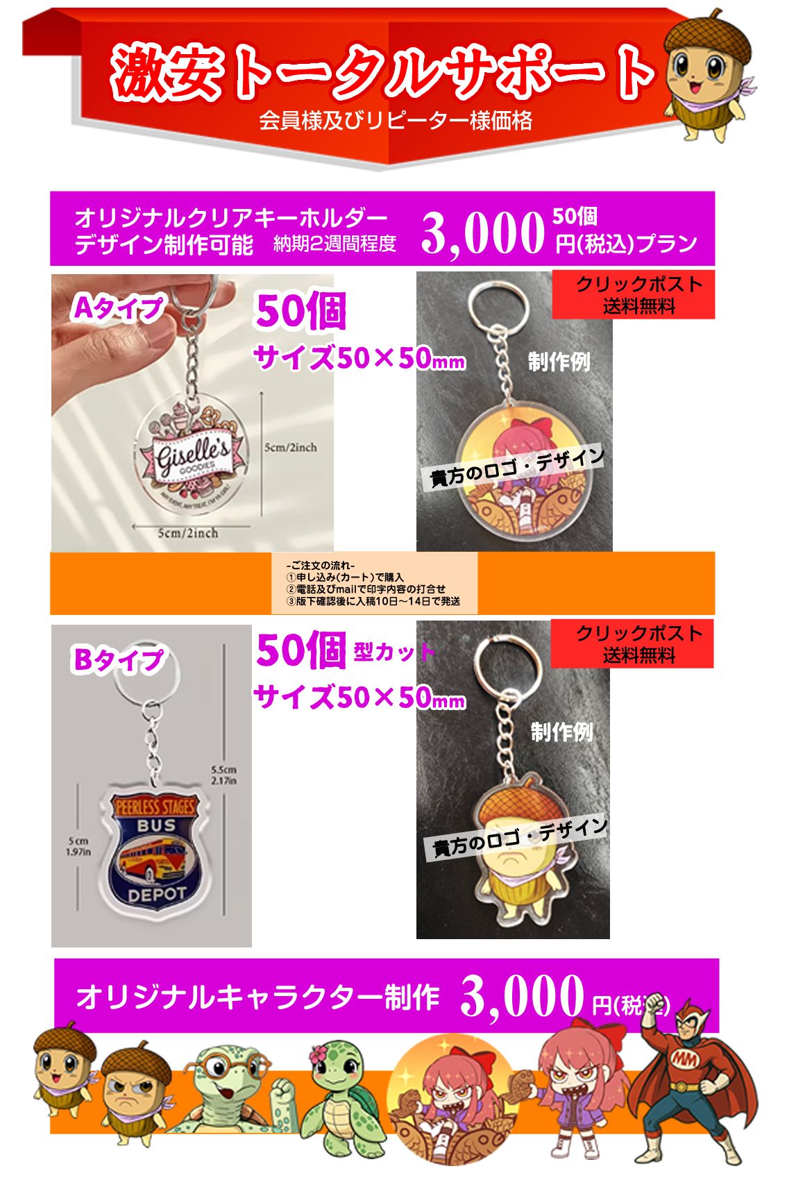 【Bタイプ】オリジナルクリアキーホルダー 50個3000円税込